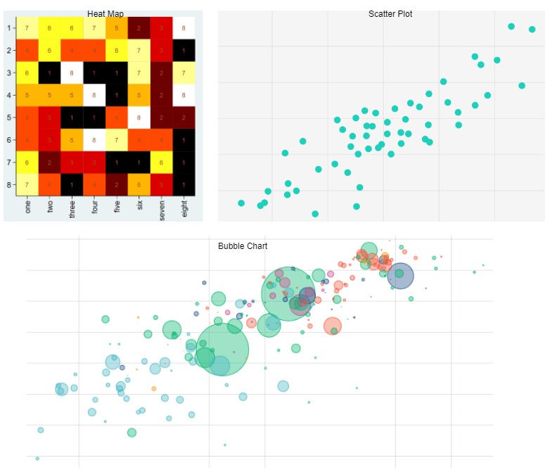 Scatter Plot: A scatter plot is a type of data visualization that displays the relationship between two numerical variables. It uses Cartesian coordinates, where each data point is represented by a dot or marker on the plot.